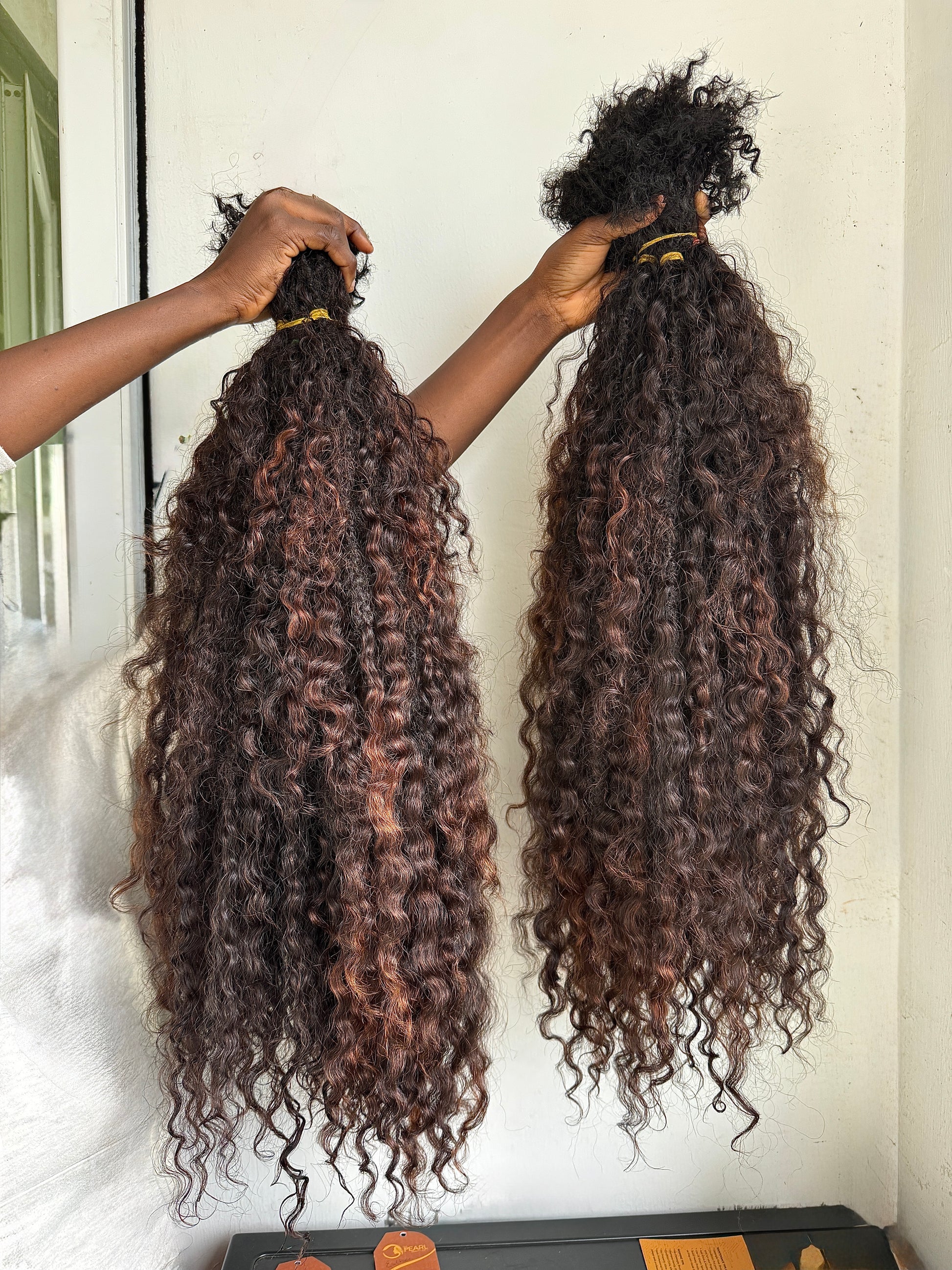 “These locs are made with 100% HUMAN HAIR BURMESE Curls, featuring full, thick curls from root to tip.”