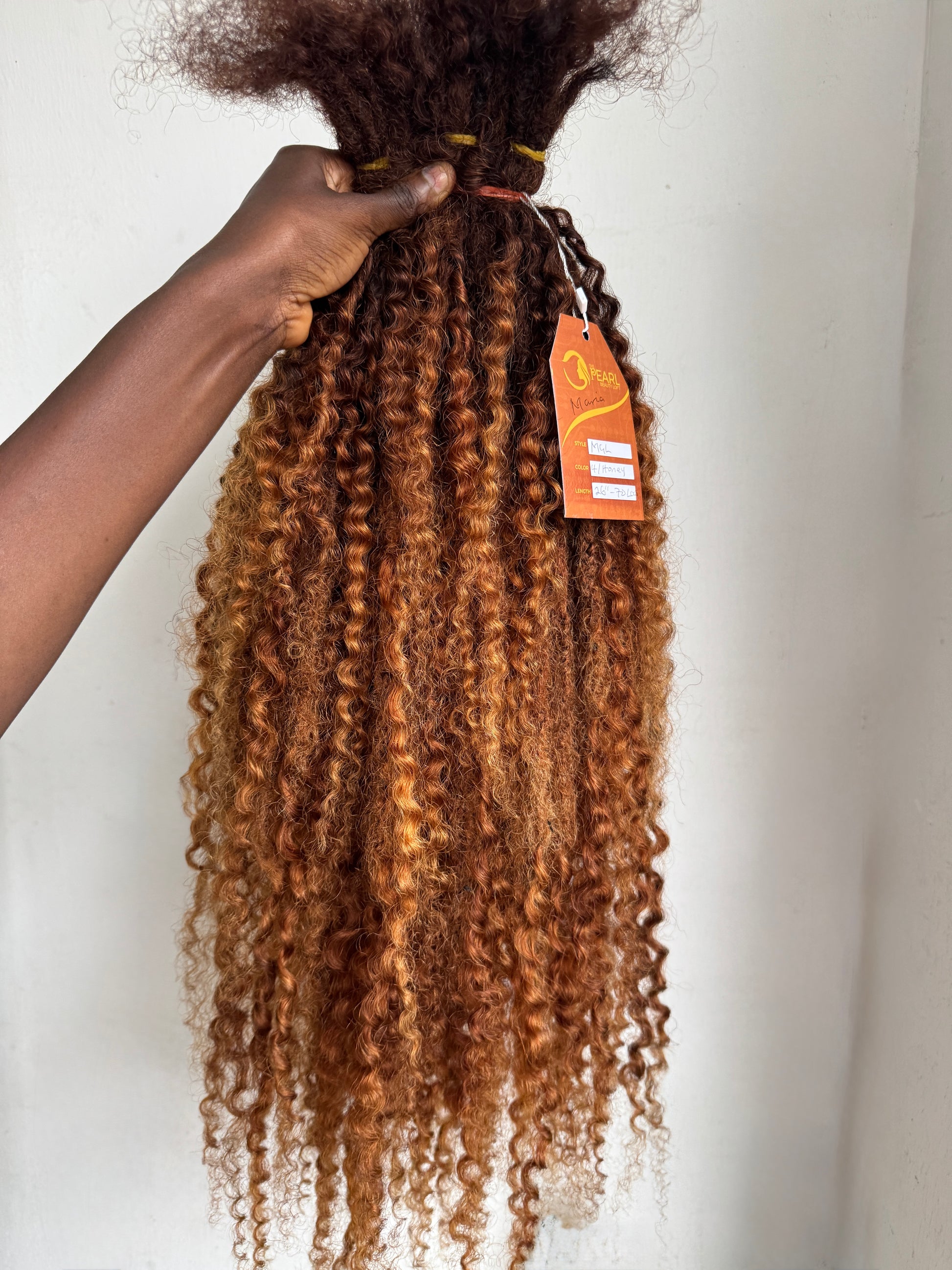 “These locs are made with 100% human virgin KINKY HUMAN hair Curls, featuring full, thick curls from root to tip.”